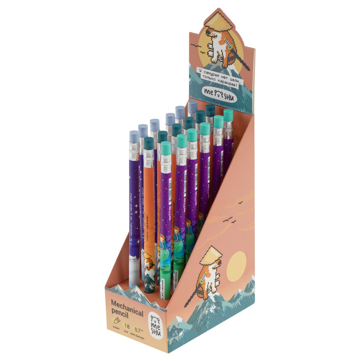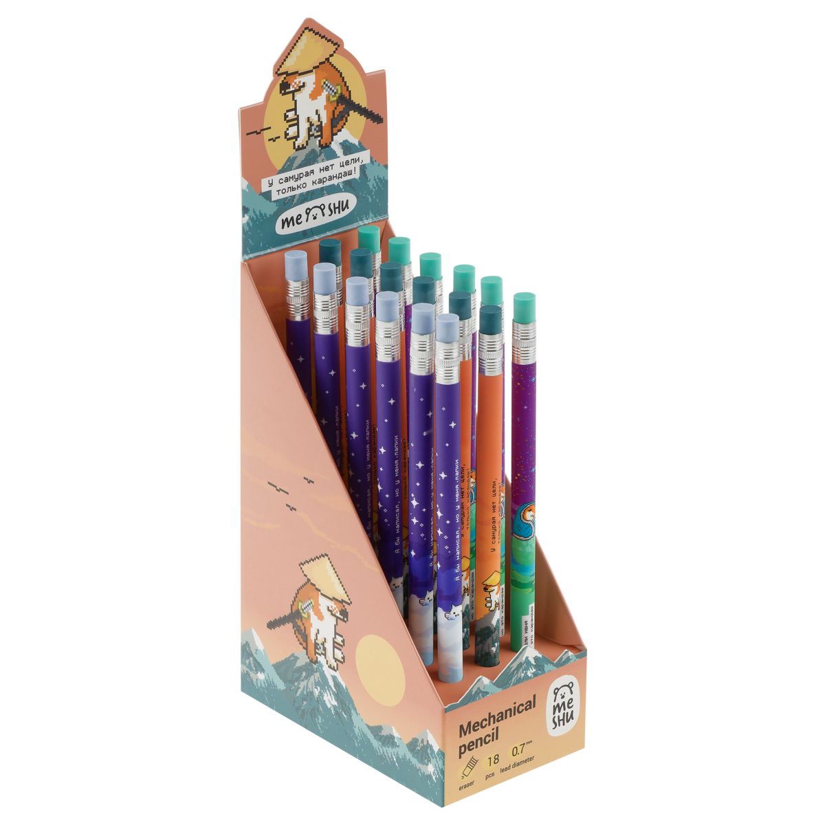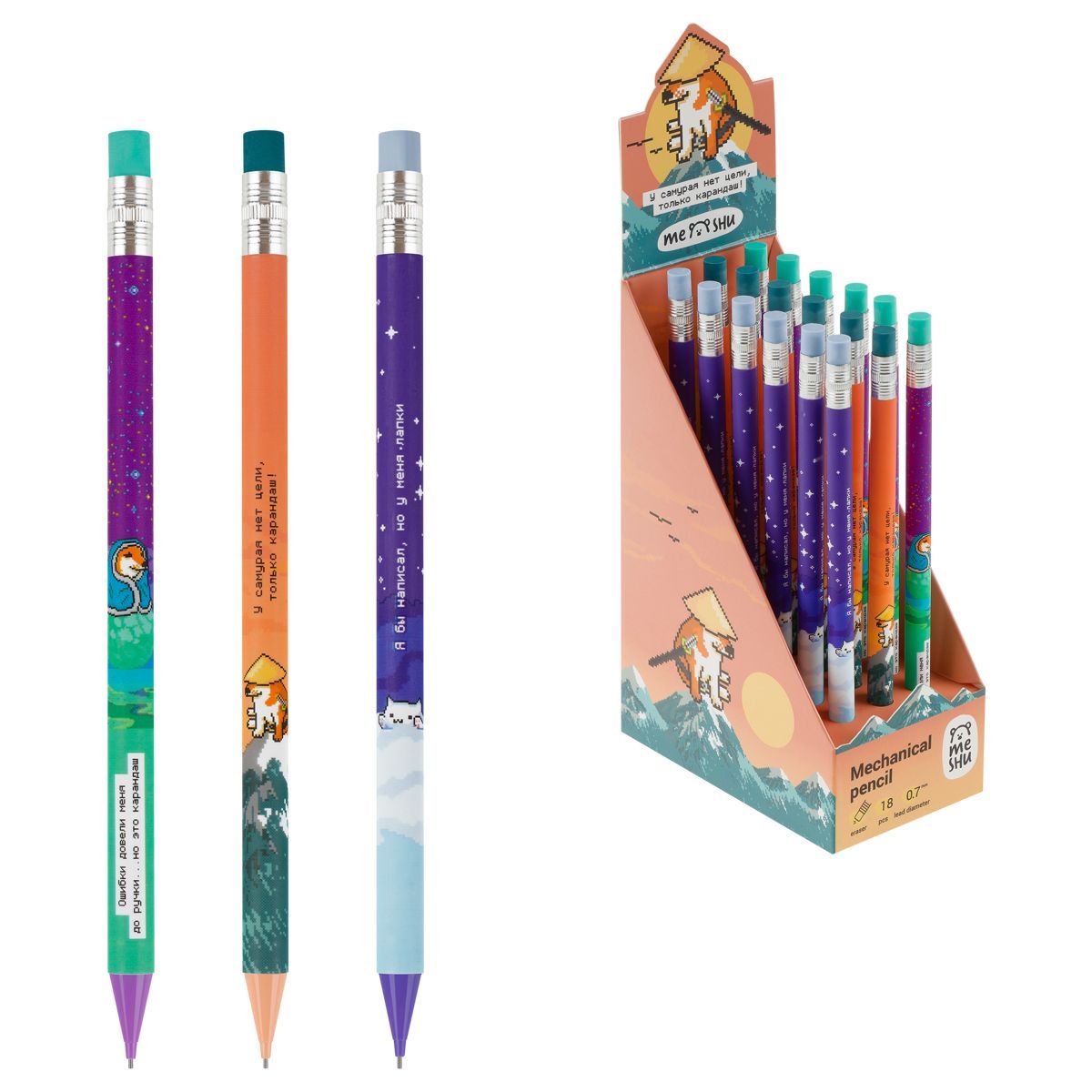 Карандаш механический MESHU "Pixel", печать на корпусе, с ластиком, 0,7мм, ассорти