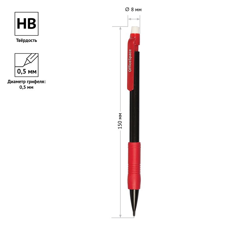 Карандаш механический OfficeSpace 0,5мм, грип, с ластиком, ассорти