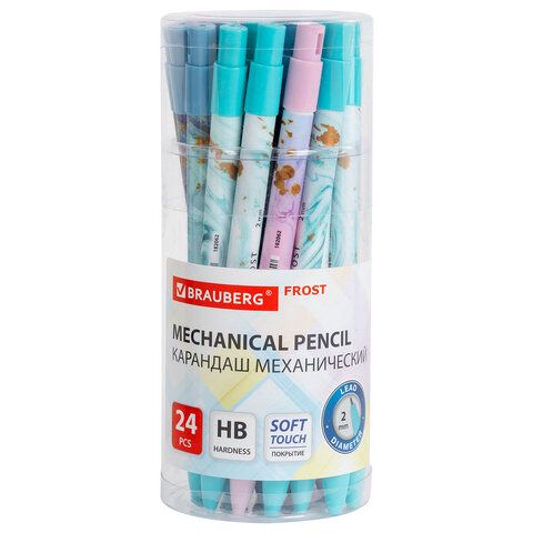 Карандаш механический цанговый 2 мм, BRAUBERG "FROST", HB, встроенная точилка, корпус ассорти, 182062