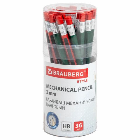 Карандаш механический цанговый 2 мм, BRAUBERG STYLE, HB, встроенная точилка, корпус ассорти, 181960