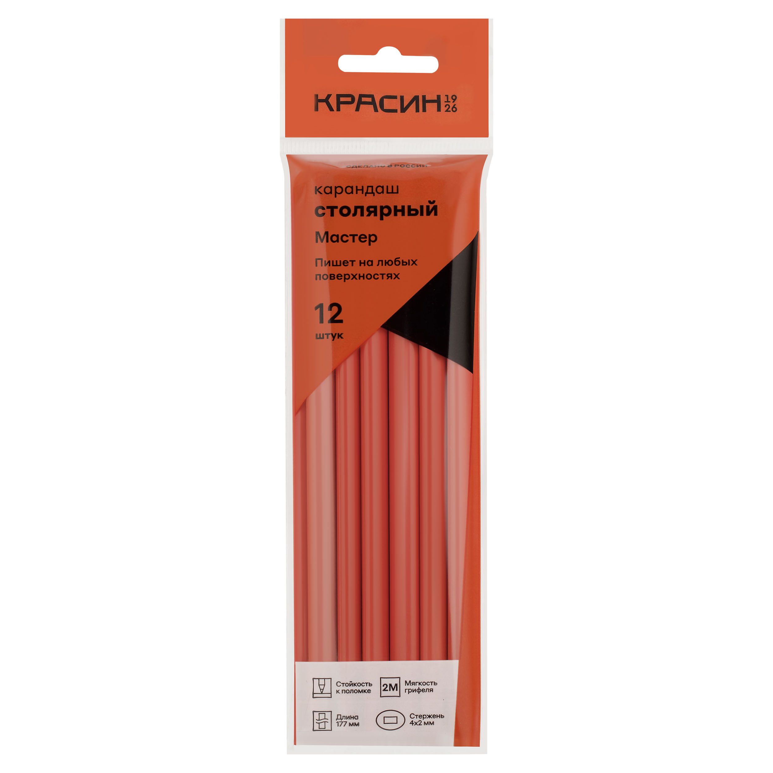 Карандаш столярный Красин "Мастер", овального сечения 2М(2B), заточен., пакет, европодвес