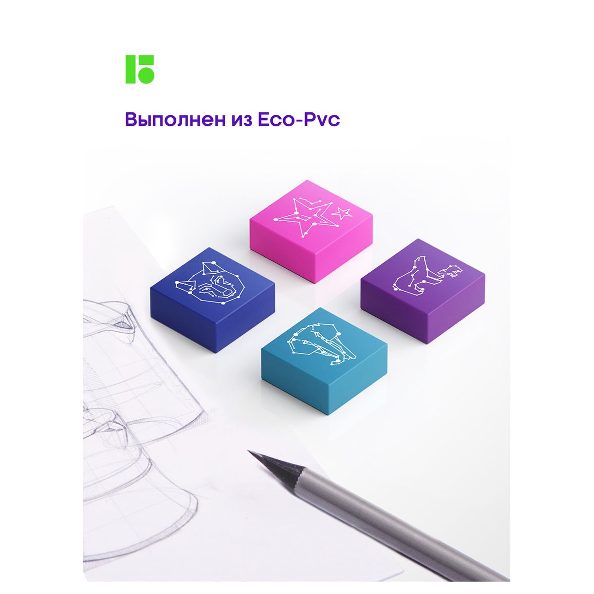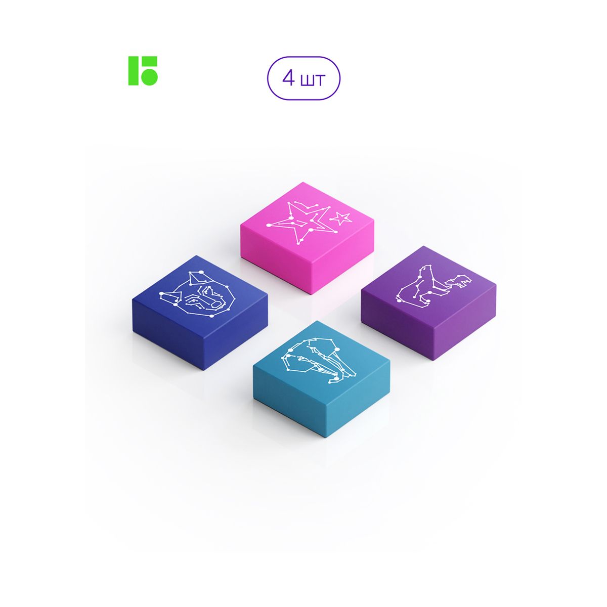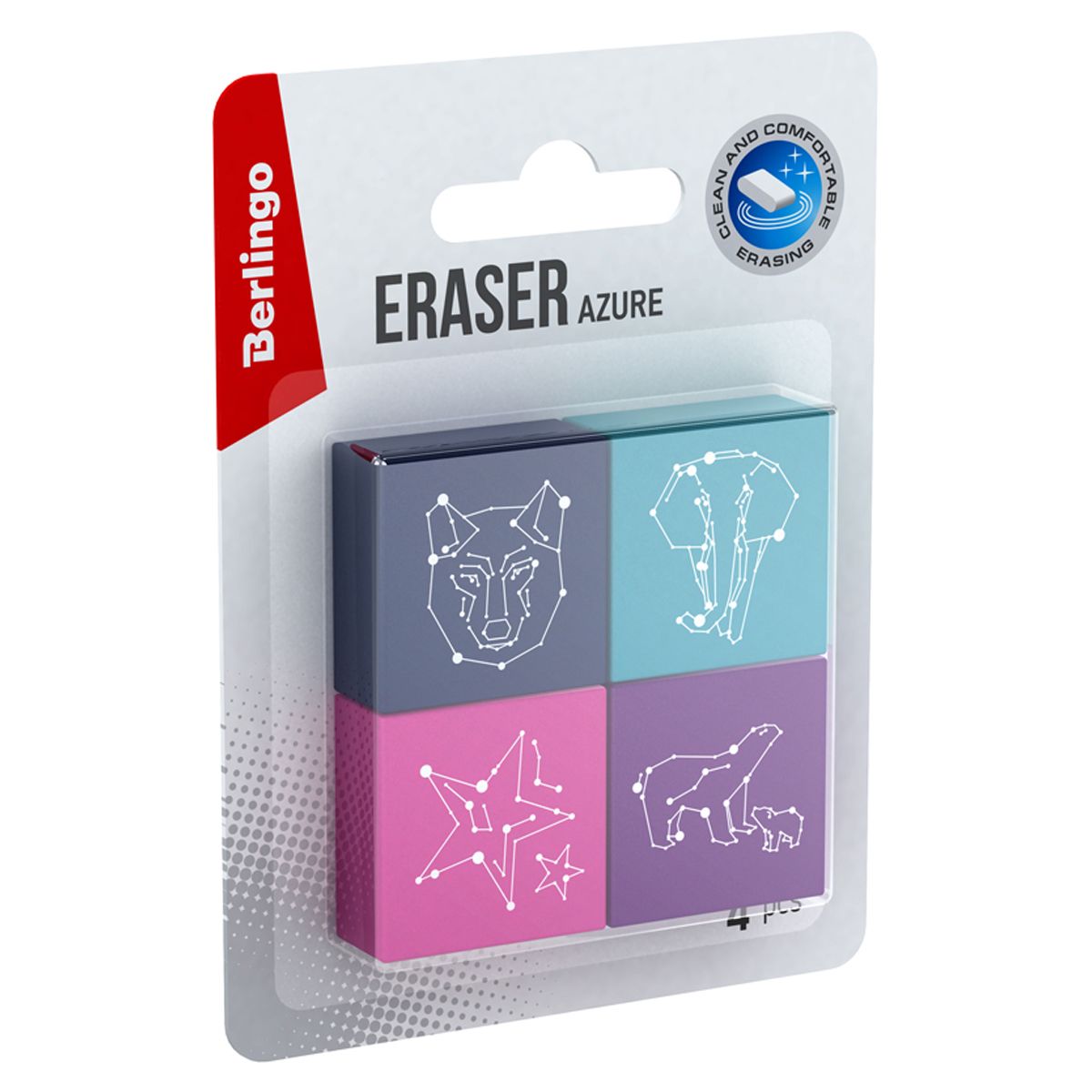 Ластик Berlingo "Azure", 4шт., прямоугольный, 28*28*12мм, блистер