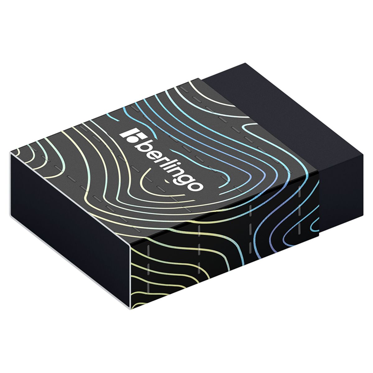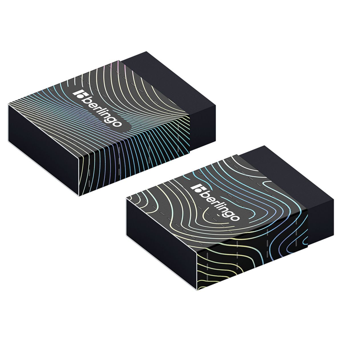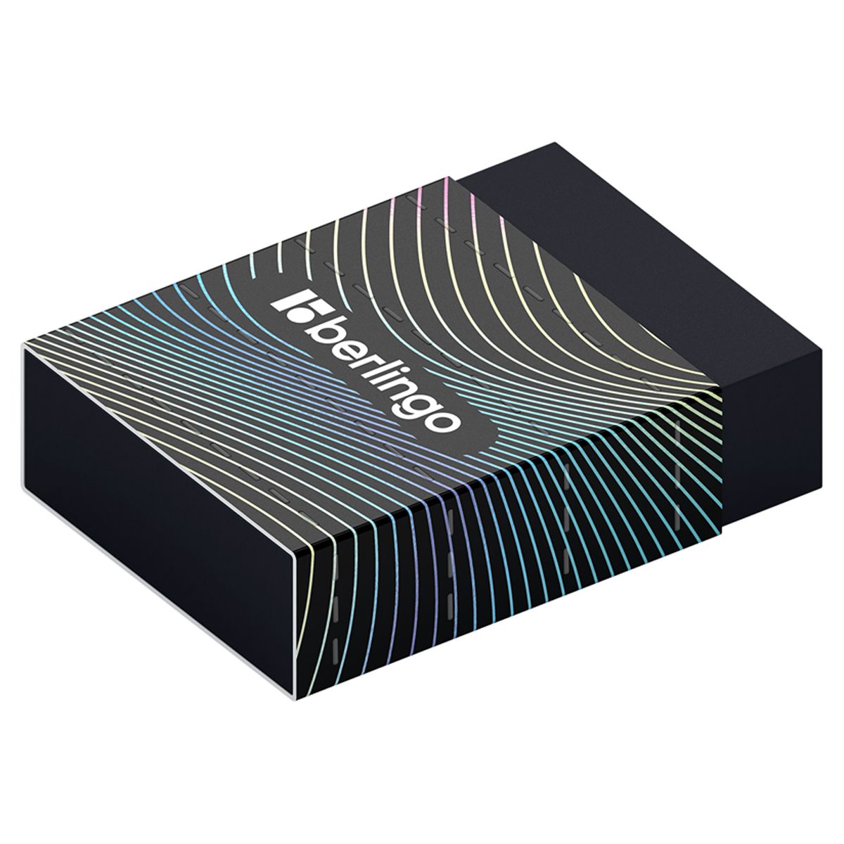 Каждый ластик упакован в картонный держатель и пленку, которые защищают ластик от грязи и пыли. У каждого ластика есть штрих-код. Дизайн выполнен в стиле коллекции Berlingo 2023 "Electric".