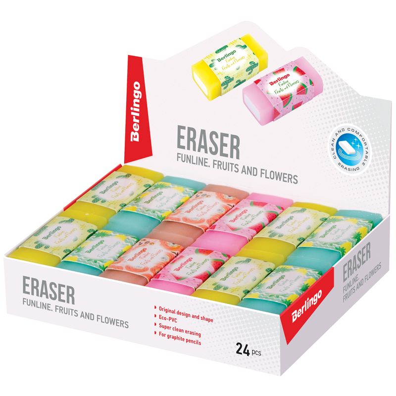 Ластик Berlingo "Funline. Fruits and Flowers", цвета ассорти, 50*20*11мм