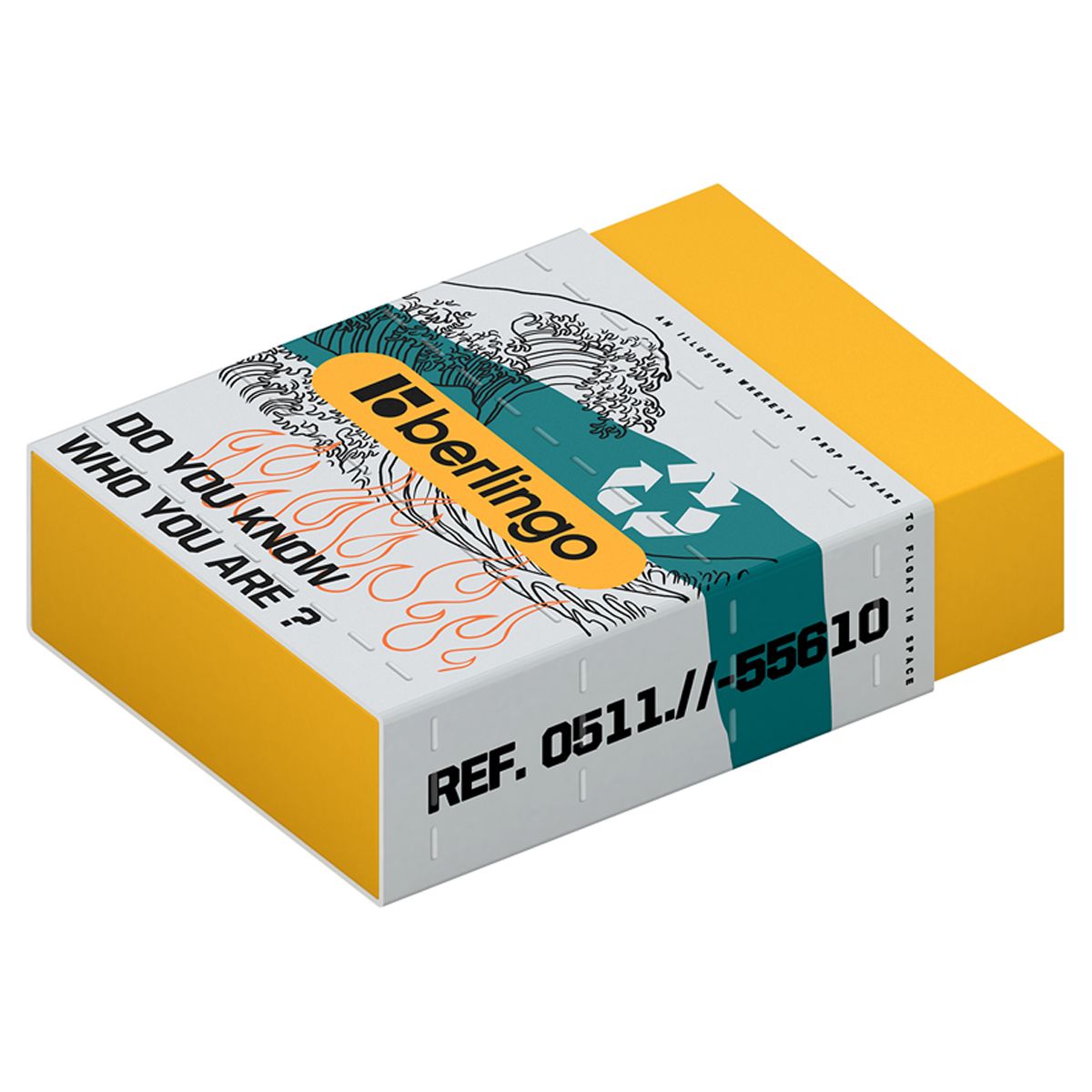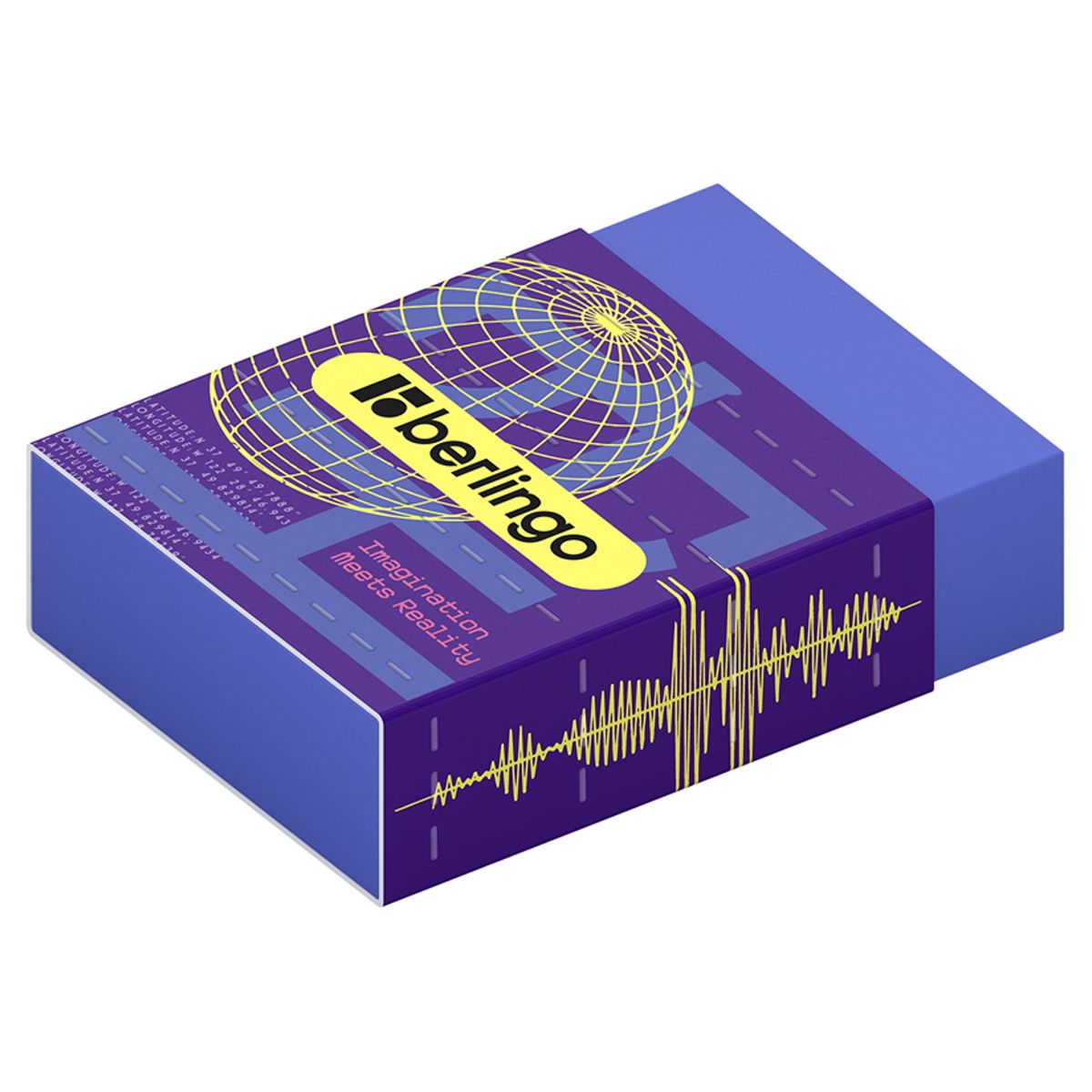 Каждый ластик упакован в картонный держатель и пленку, которые защищают ластик от грязи и пыли. У каждого ластика есть штрих-код. Дизайн выполнен в стиле коллекции Berlingo 2023 "Glyph".