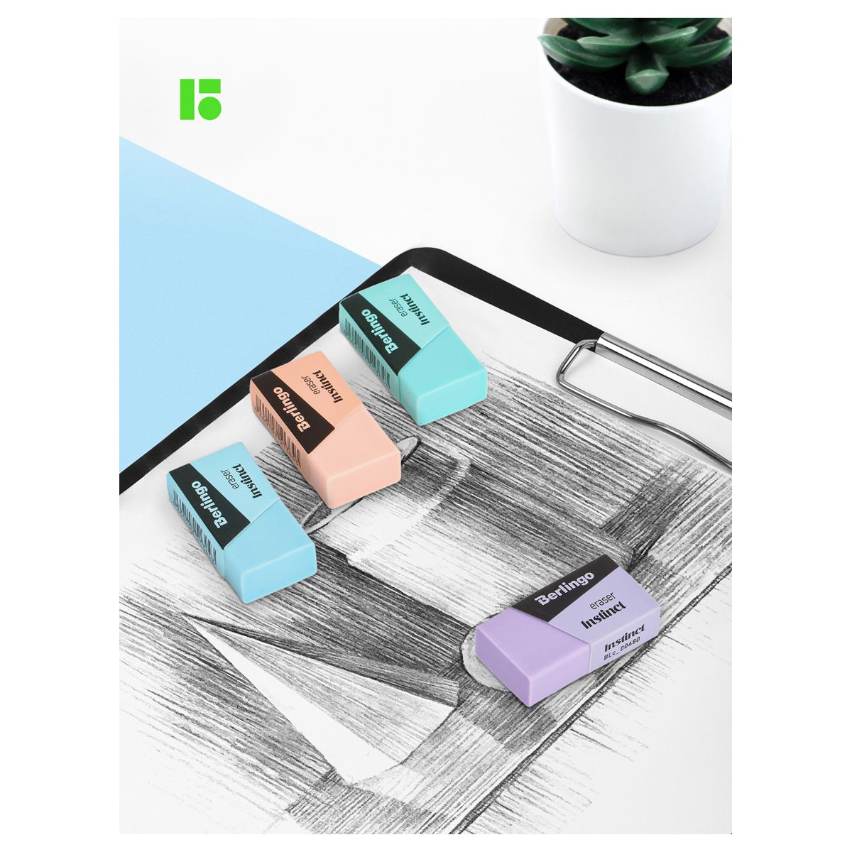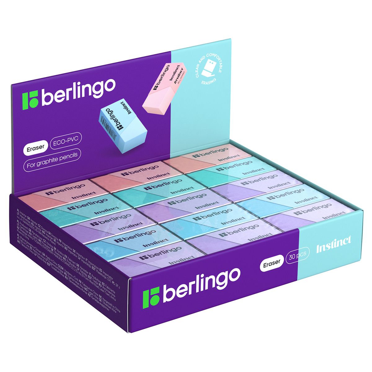 Ластик Berlingo "Instinct", цвета ассорти, 40*20*10мм