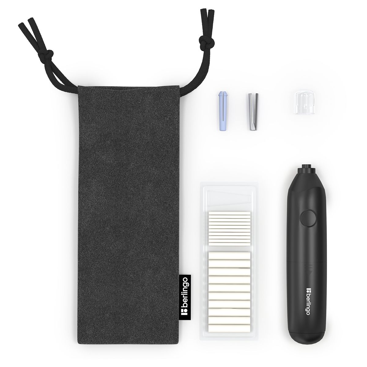 Ластик электрический Berlingo “Eraze”, в комплекте 20 сменных ластиков, мешочек для хранения, PVC бокс