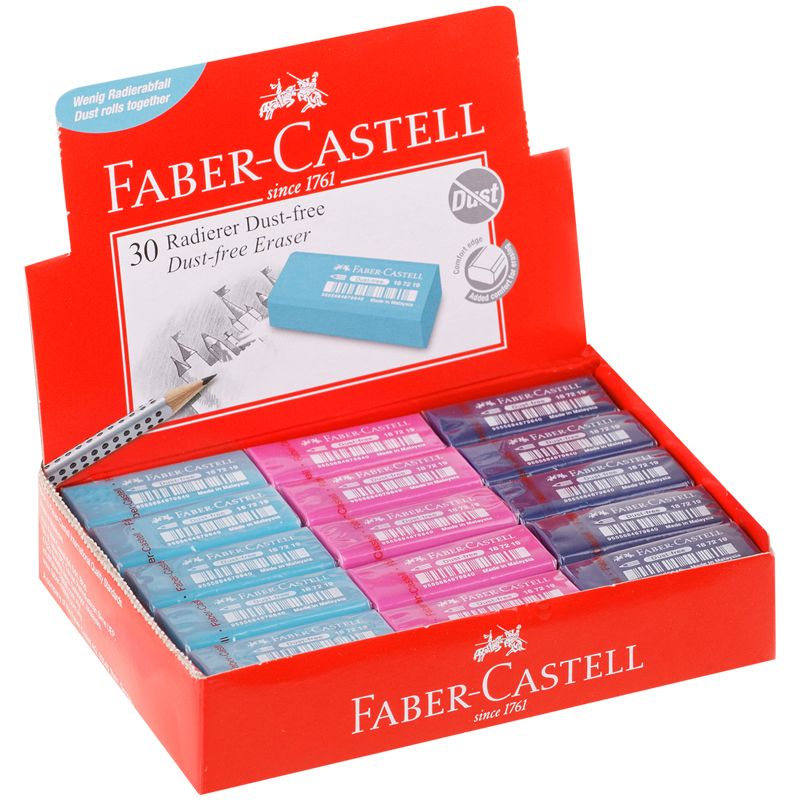 Ластик Faber-Castell "Dust Free", прямоугольный, в пленке, бирюзовый/розовый/синий, 11*18*41мм