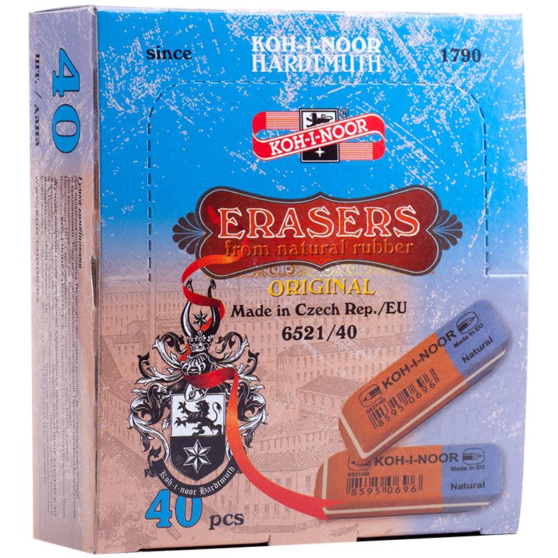 Ластик Koh-I-Noor "Blue Star" 40, скошенный, комбинированный, натуральный каучук, 57*19,5*8мм