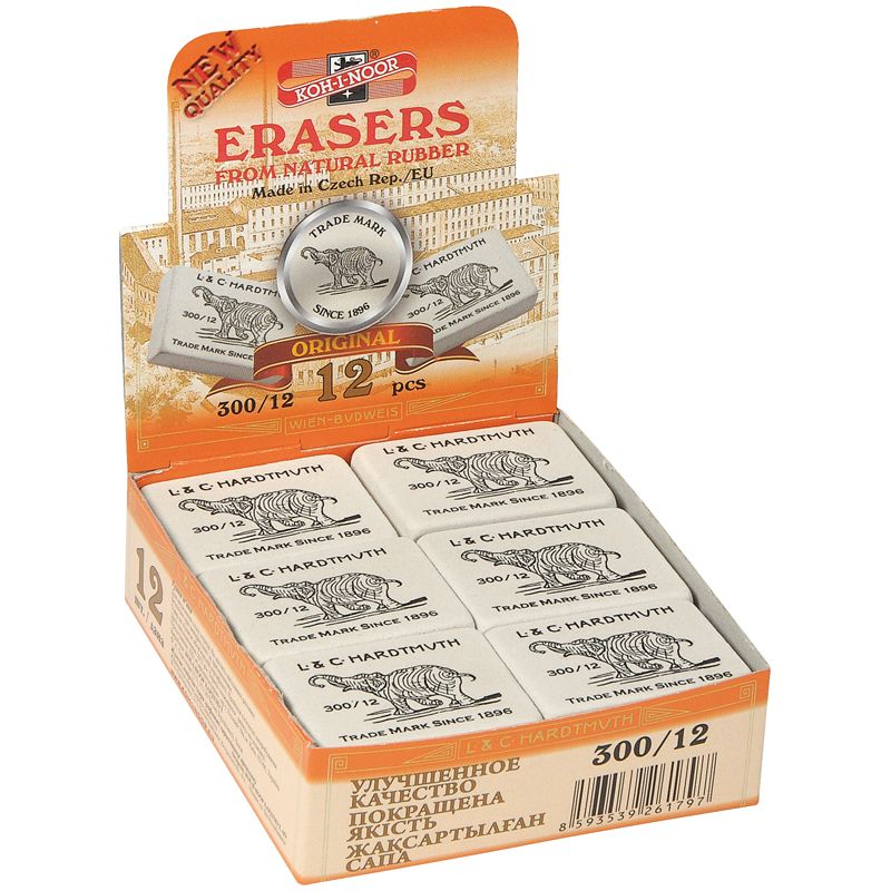 Ластик Koh-I-Noor "Elephant" 300/12, прямоугольный, натуральный каучук, 48*37*16мм, ч/б