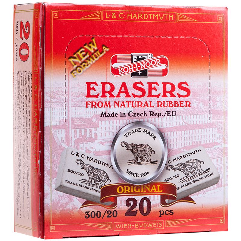 Ластик Koh-I-Noor "Elephant" 300/20, прямоугольный, натуральный каучук, 45*32*12мм, ч/б