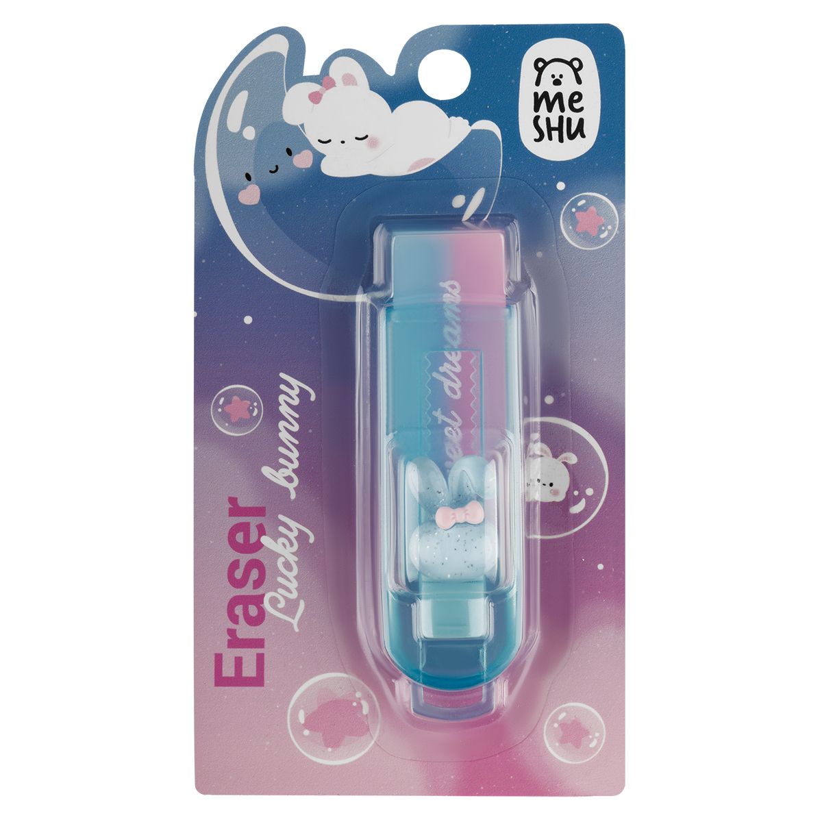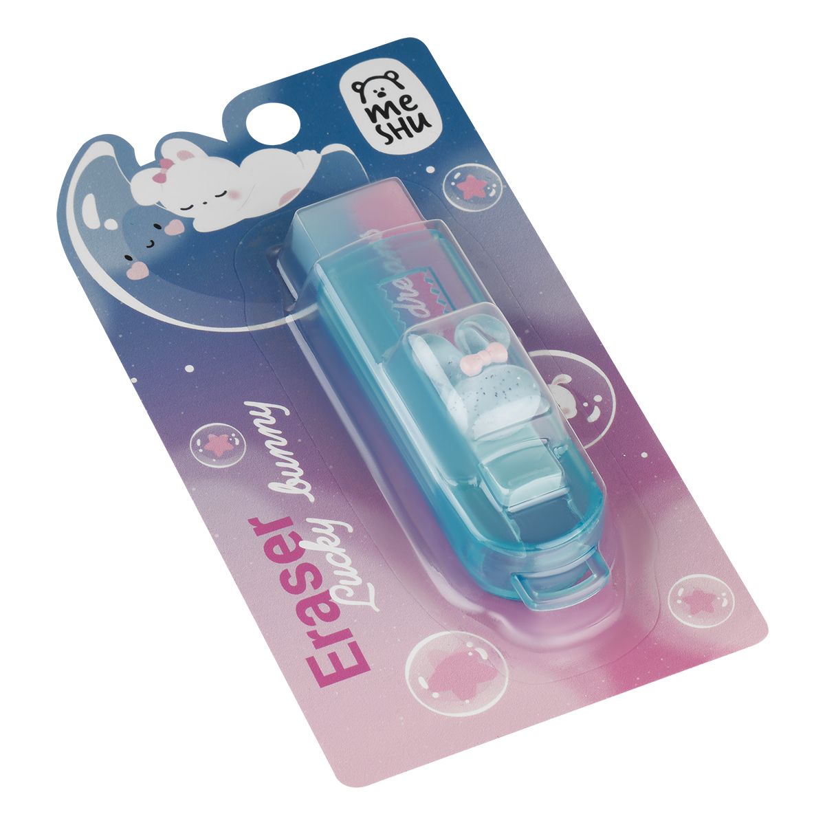 Ластик MESHU "Lucky Bunny", 90*25*25мм, ПВХ, пластиковый футляр, блистер, европодвес