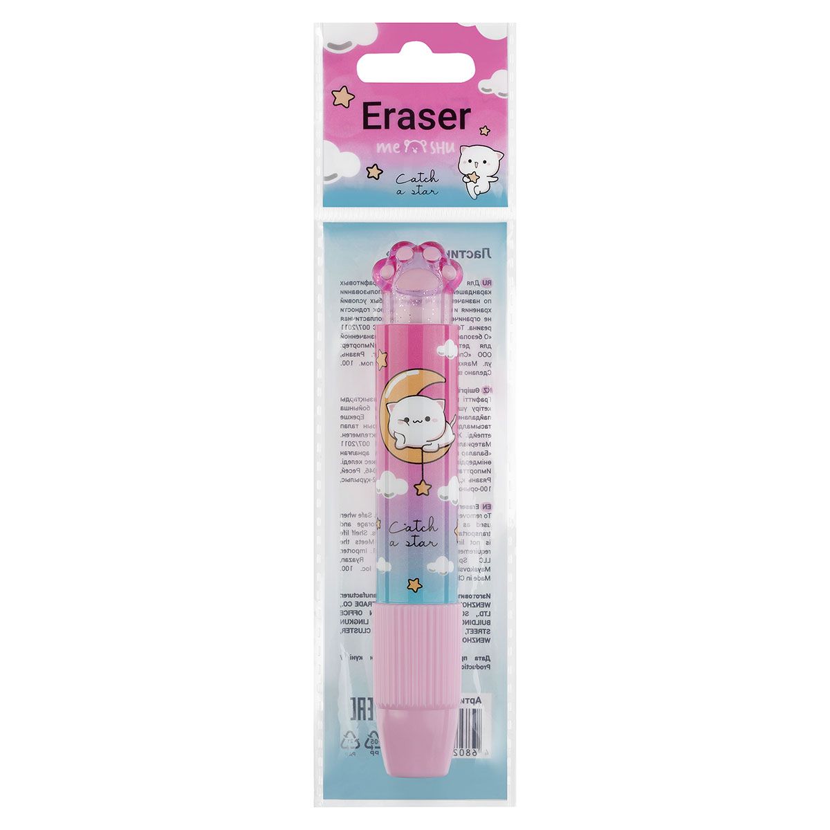 Ластик MESHU "Meow", 115*18*18мм, термопластичная резина, пластиковый футляр, пакет, европодвес