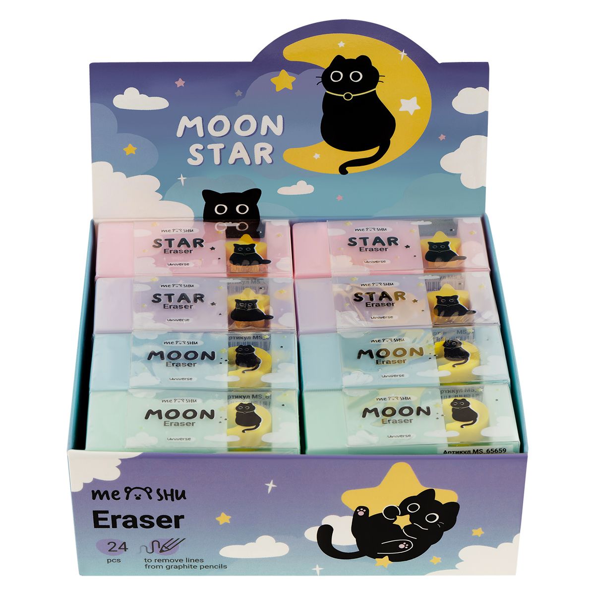 Ластик MESHU "Universe", 61*26*14мм, ПВХ, дисплей бокс, ассорти