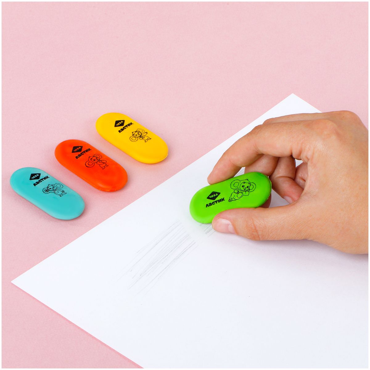 Ластик Мульти-Пульти "Чебурашка", овальный, термопластичная резина, 60*28*12мм