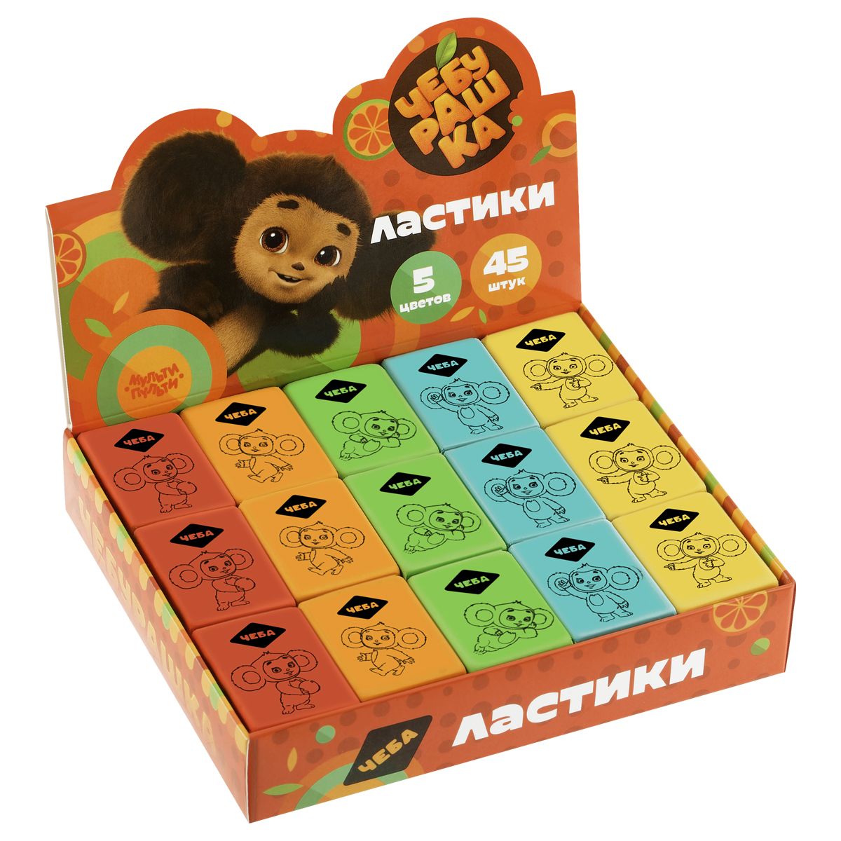 Ластик Мульти-Пульти "Чебурашка", прямоугольный, термопластичная резина, 35*25*8мм