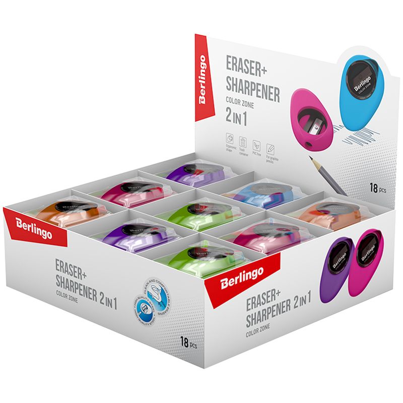 Ластик-точилка Berlingo "Color Zone" 1 отверстие, контейнер, цвета ассорти