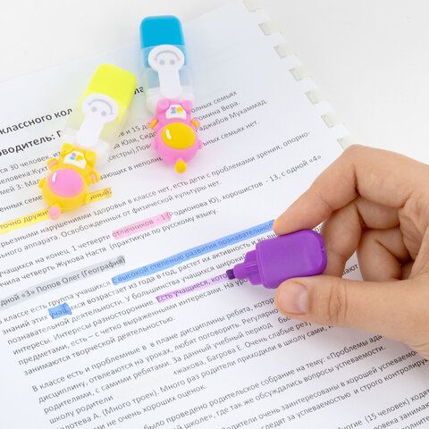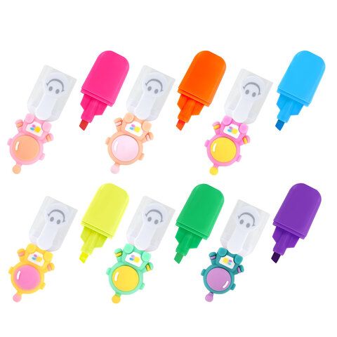 Для творческих задач и оформления презентаций подойдут яркие наборы и маркеры с необычным дизайном. Некоторые текстовыделители имеют вытянутую форму корпуса и позволяют писать линией от 1 до 4 мм, обеспечивая комфорт и точность в работе.