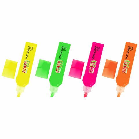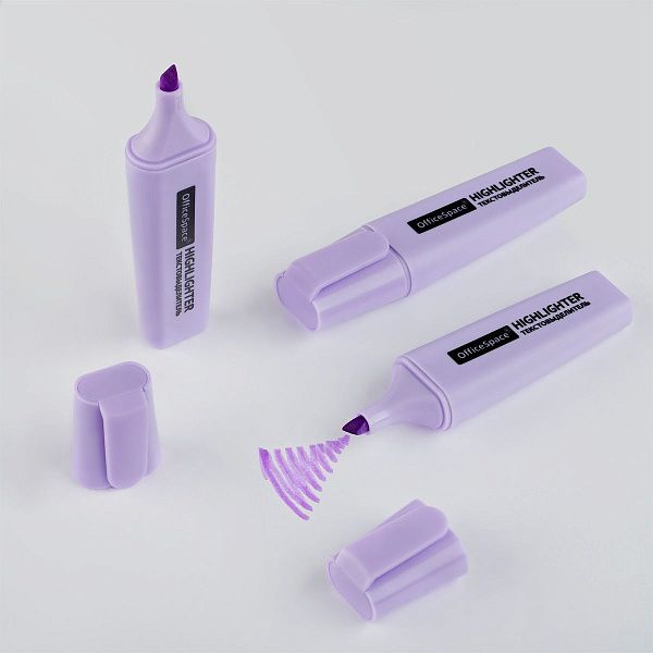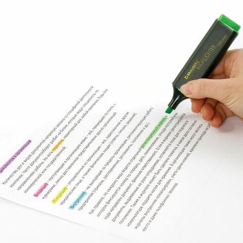 Офисные и ученические текстовыделители используются для подчёркивания ключевых фраз в тексте. Многие из них оснащены скошенным наконечником, который позволяет менять толщину линии — от 1 до 5 мм. Такая конструкция делает их удобными при работе с различными шрифтами и форматами текста.