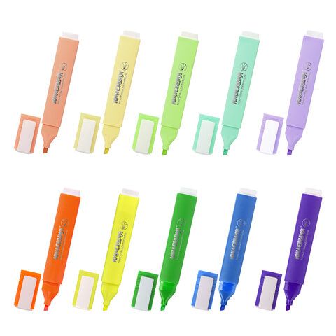Для творческих задач и оформления презентаций подойдут яркие наборы и маркеры с необычным дизайном. Некоторые текстовыделители имеют вытянутую форму корпуса и позволяют писать линией от 1 до 4 мм, обеспечивая комфорт и точность в работе.