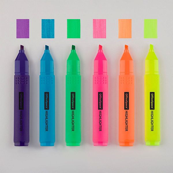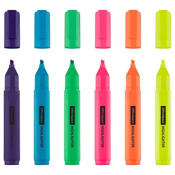 Офисные и ученические текстовыделители используются для подчёркивания ключевых фраз в тексте. Многие из них оснащены скошенным наконечником, который позволяет менять толщину линии — от 1 до 5 мм. Такая конструкция делает их удобными при работе с различными шрифтами и форматами текста.