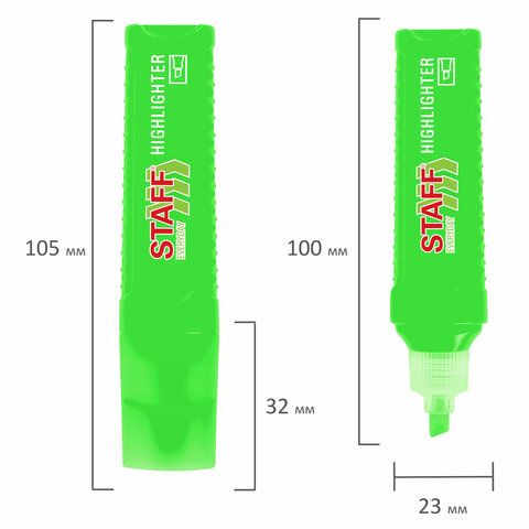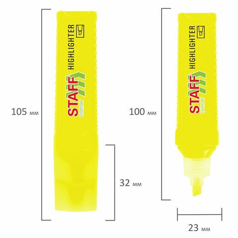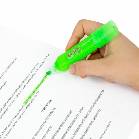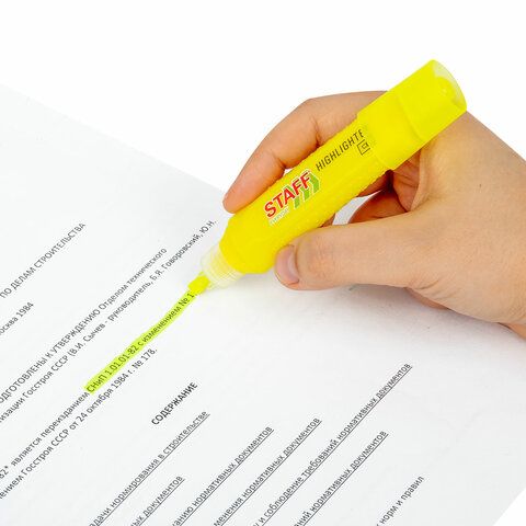 Офисные и ученические текстовыделители используются для подчёркивания ключевых фраз в тексте. Многие из них оснащены скошенным наконечником, который позволяет менять толщину линии — от 1 до 5 мм. Такая конструкция делает их удобными при работе с различными шрифтами и форматами текста.
