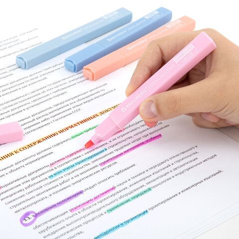 Для творческих задач и оформления презентаций подойдут яркие наборы и маркеры с необычным дизайном. Некоторые текстовыделители имеют вытянутую форму корпуса и позволяют писать линией от 1 до 4 мм, обеспечивая комфорт и точность в работе.