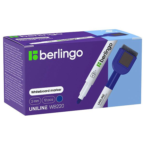 - Бренд Berlingo "Uniline WB300" — маркер с пулевидным пишущим узлом и шириной линии 3 мм. Подходит для длительного использования благодаря удобному корпусу и высокому качеству чернил.