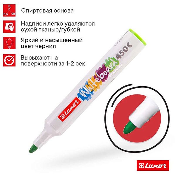 Маркеры для белых досок предназначены для нанесения записей на магнитно-маркерную поверхность, а также на стекло, фарфор или специальную плёнку. Их основное преимущество — возможность многократного стирания без повреждения покрытия. Чернила на спиртовой основе обеспечивают яркий и насыщенный цвет, который хорошо виден даже с большого расстояния.