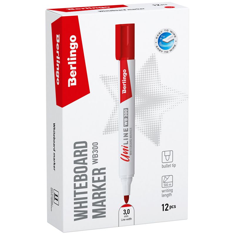 Маркер для белых досок Berlingo "Uniline WB300", красный, пулевидный, 3мм