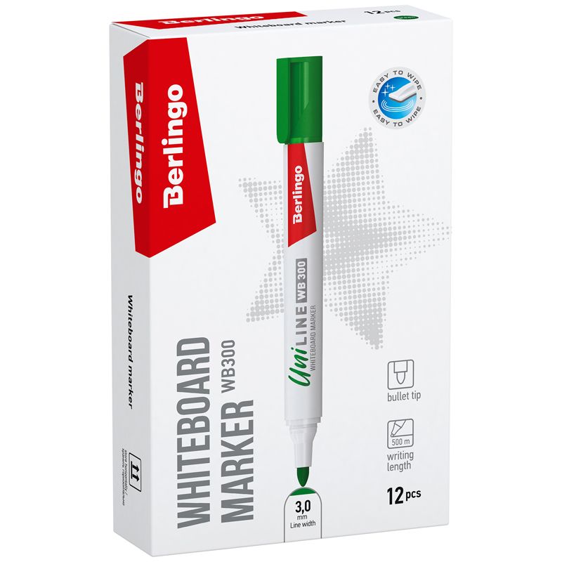Маркер для белых досок Berlingo "Uniline WB300", зеленый, пулевидный, 3мм