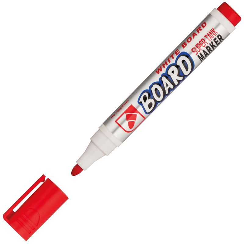 Прочный фибровый наконечник не западает в корпус и сохраняет форму на протяжении всего срока службы маркера. След от маркера легко удаляется сухой губкой. Пулевидный наконечник позволяет наносить яркие и однородные линии толщиной 3 мм. След от маркера легко удаляется сухой губкой. Длина линии письма - до 700 метров. Цвет чернил - красный. Упаковка: картонная коробочка по 12 штук.