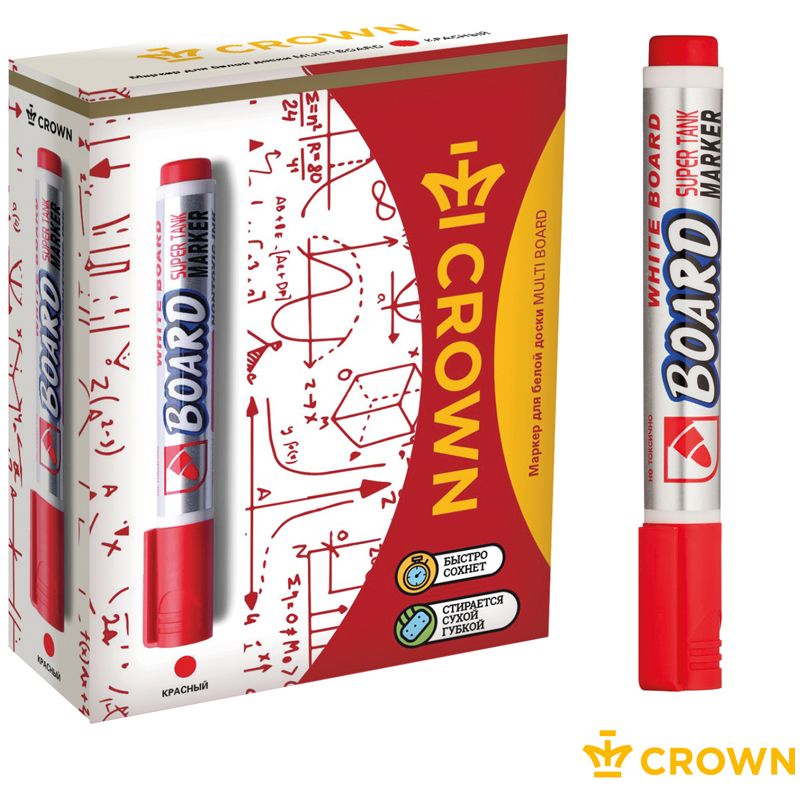 Маркер для белых досок Crown "Multi Board" красный, пулевидный, 3мм