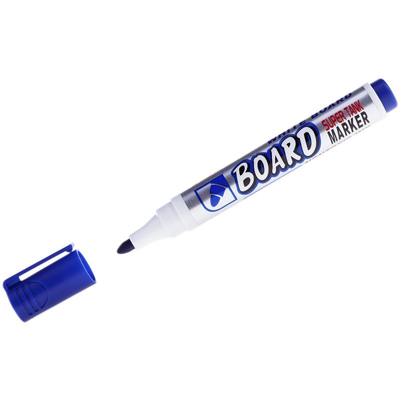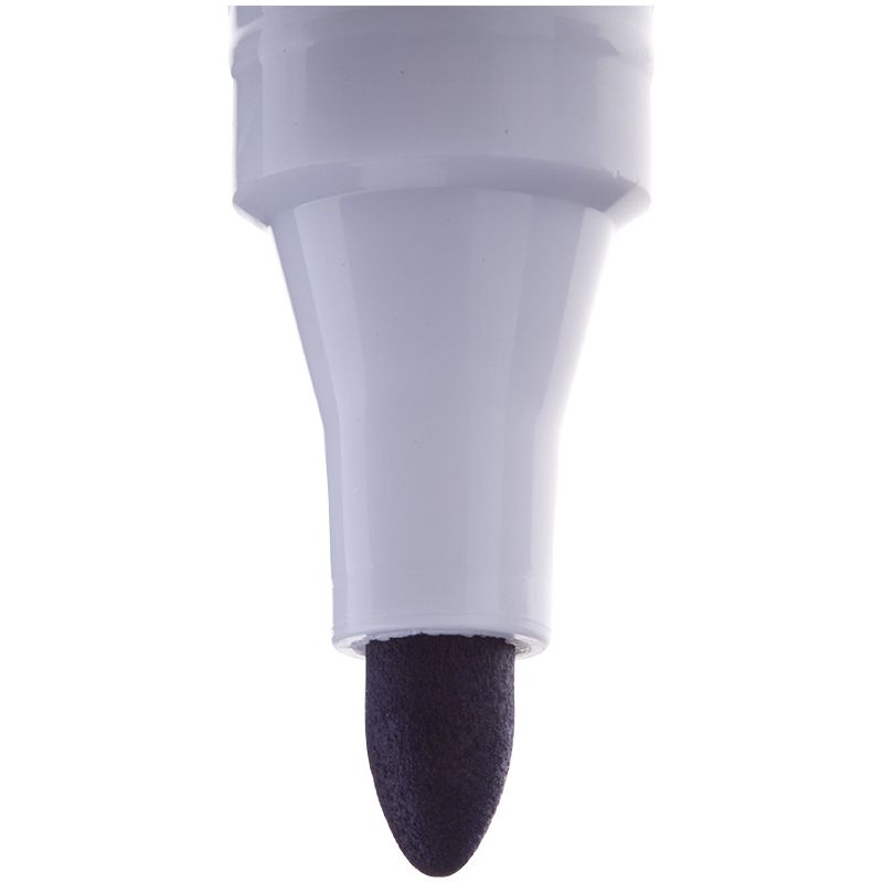 Прочный фибровый наконечник не западает в корпус и сохраняет форму на протяжении всего срока службы маркера. След от маркера легко удаляется сухой губкой. Пулевидный наконечник позволяет наносить яркие и однородные линии толщиной 3 мм. След от маркера легко удаляется сухой губкой. Длина линии письма - до 700 метров. Цвет чернил - синий. Упаковка: картонная коробочка по 12 штук.