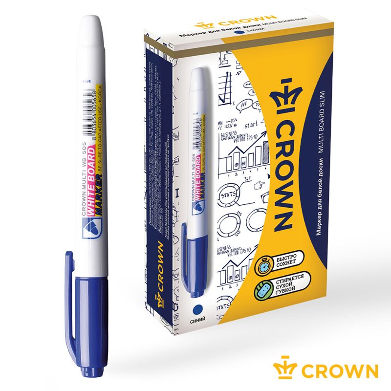 Маркер для белых досок Crown "Multi Board Slim" синий, пулевидный, 2мм