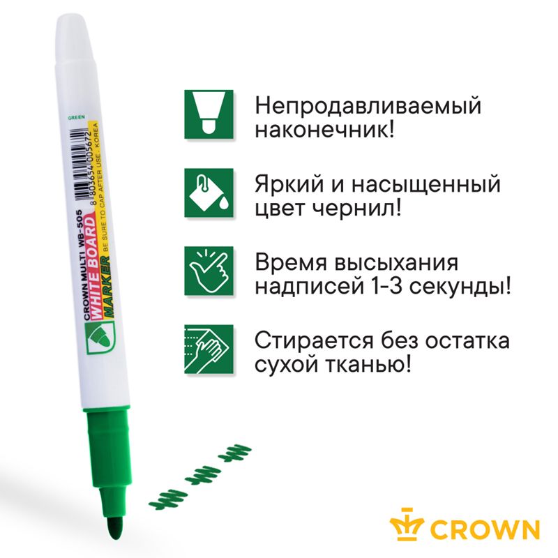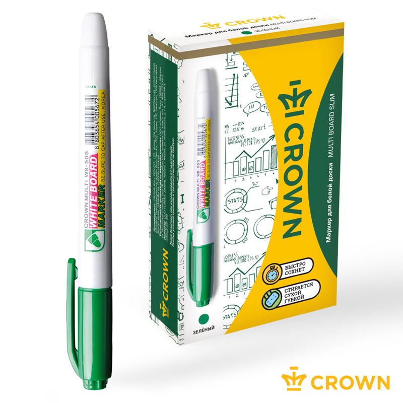 Маркер для белых досок Crown "Multi Board Slim" зеленый, пулевидный, 2мм