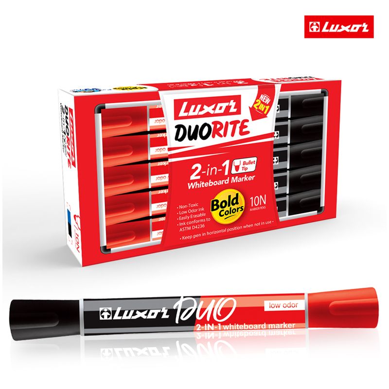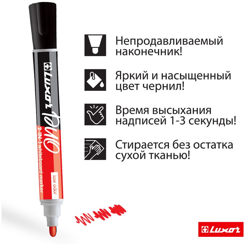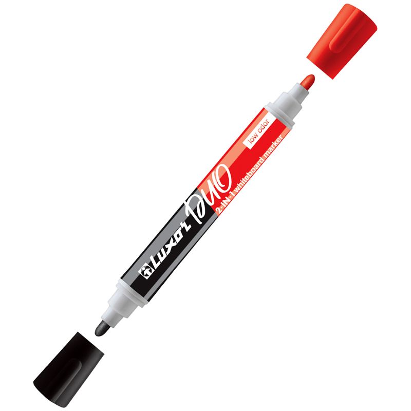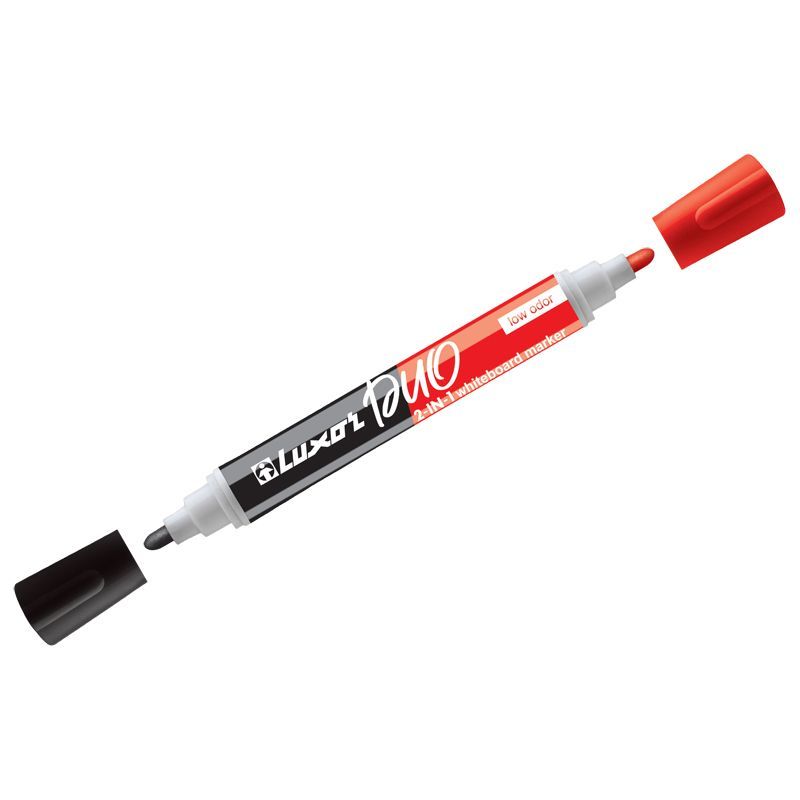 Маркер для белых досок двухсторонний Luxor "Duorite" черный/красный, пулевидный, 1-3мм