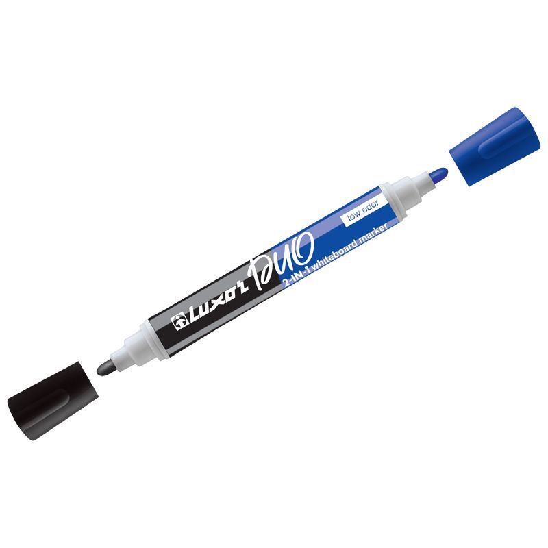 Маркер для белых досок двухсторонний Luxor "Duorite" черный/синий, пулевидный, 1-3мм