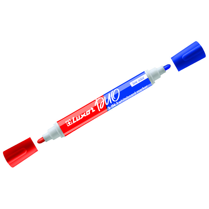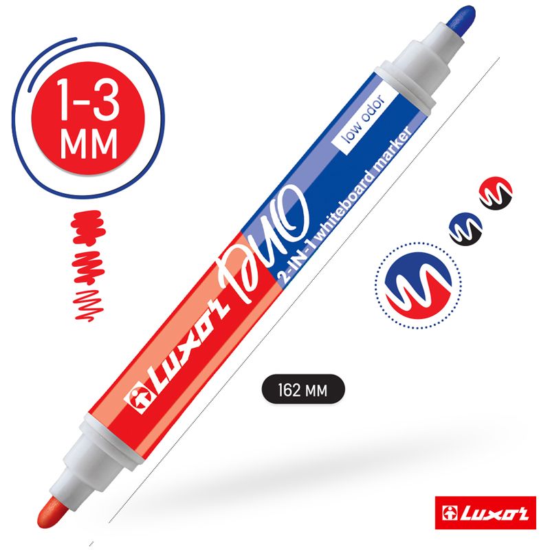 Маркер для белых досок двухсторонний Luxor "Duorite" синий/красный, пулевидный, 1-3мм