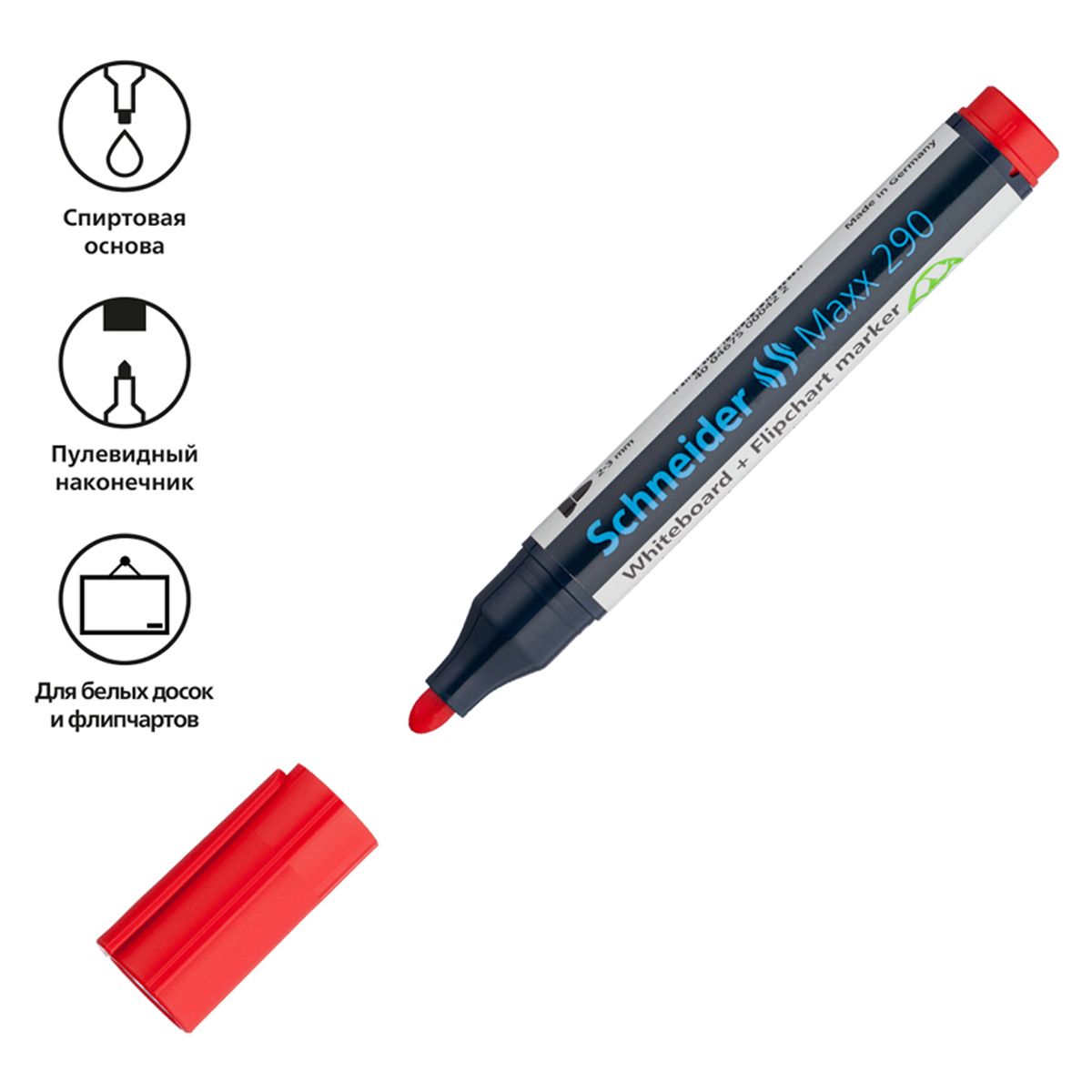 Маркер для белых досок и флипчартов Schneider "Maxx 290" красный, пулевидный, 3мм