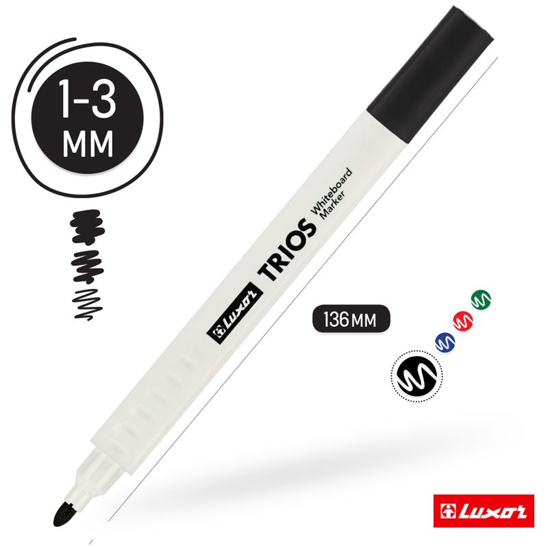 Маркер для белых досок Luxor "Trios" черный, пулевидный, 2,5мм
