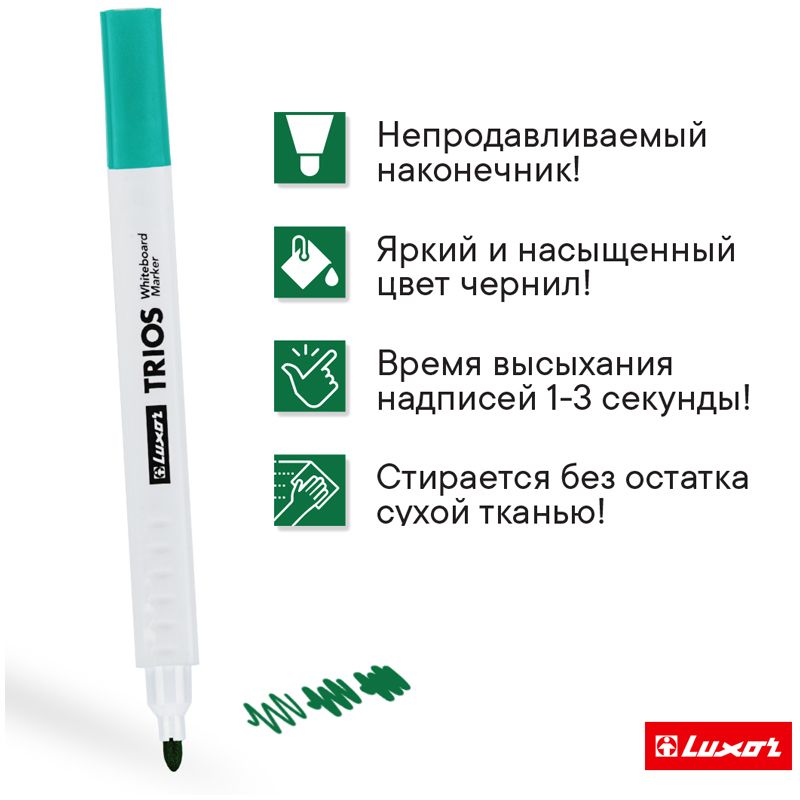 Маркер для белых досок Luxor "Trios" зеленый, пулевидный, 2,5 мм