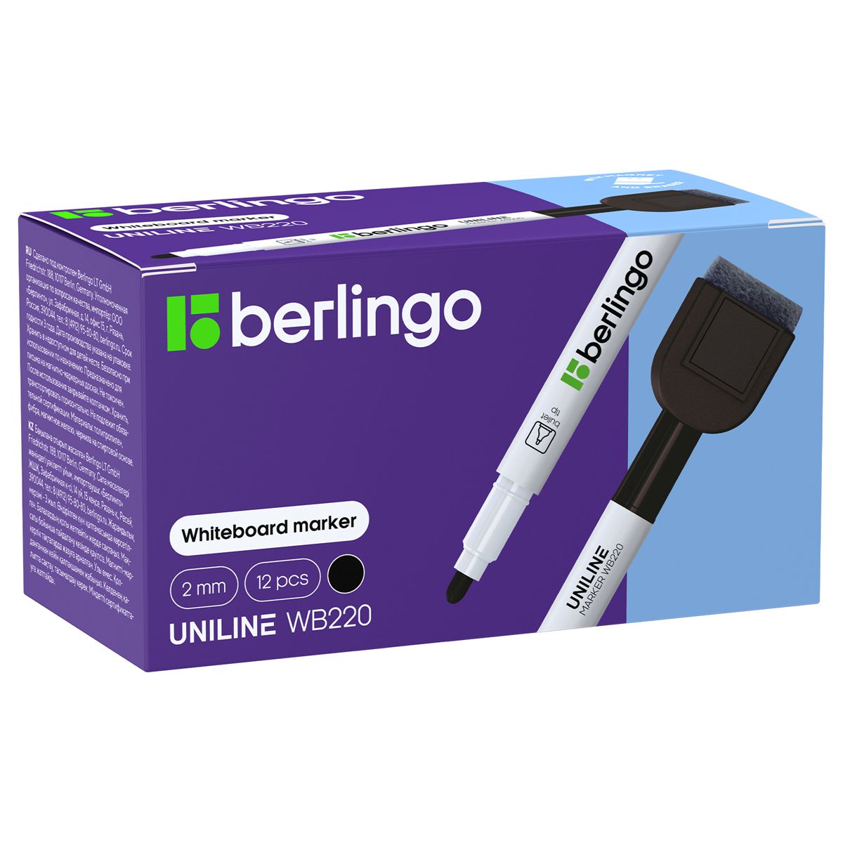 Маркер для белых досок на магните Berlingo "Uniline WB220" черный, пулевидный, 2мм