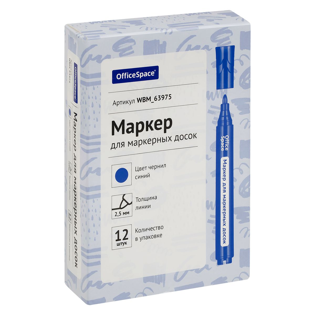 Маркер для белых досок OfficeSpace "Bullet" синий, пулевидный, 2,5мм