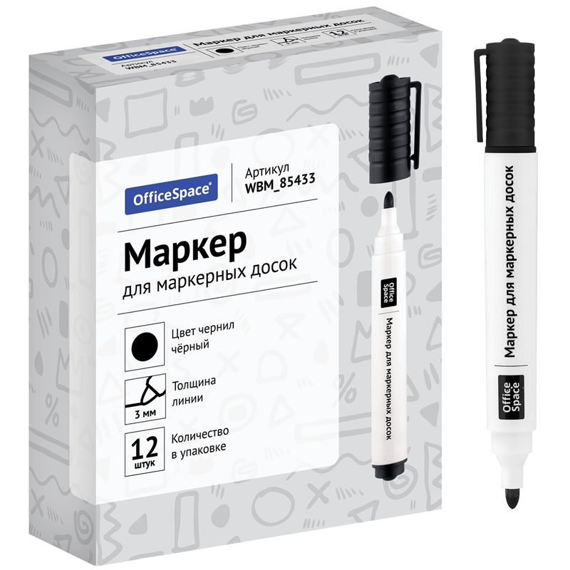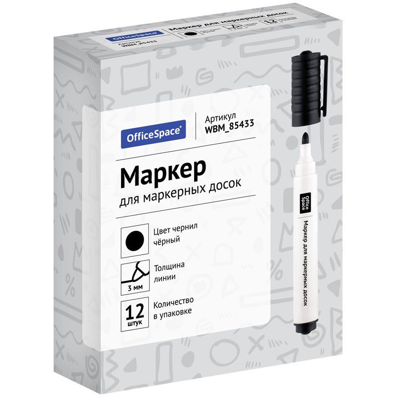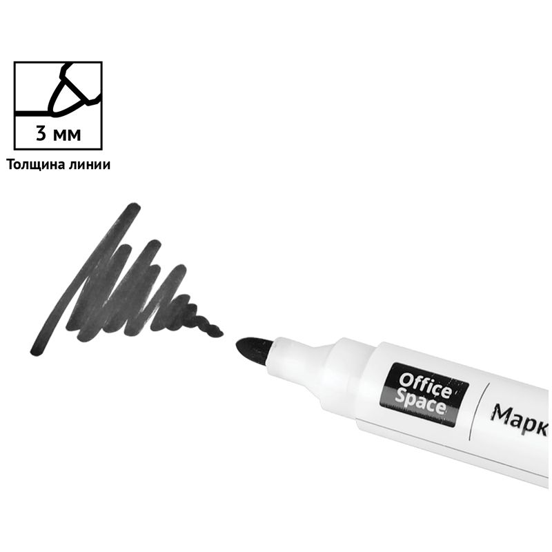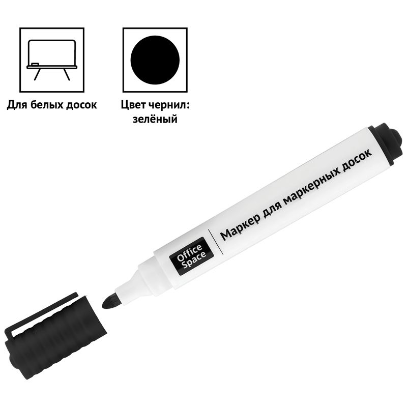 Маркер для белых досок OfficeSpace черный, пулевидный, 3мм