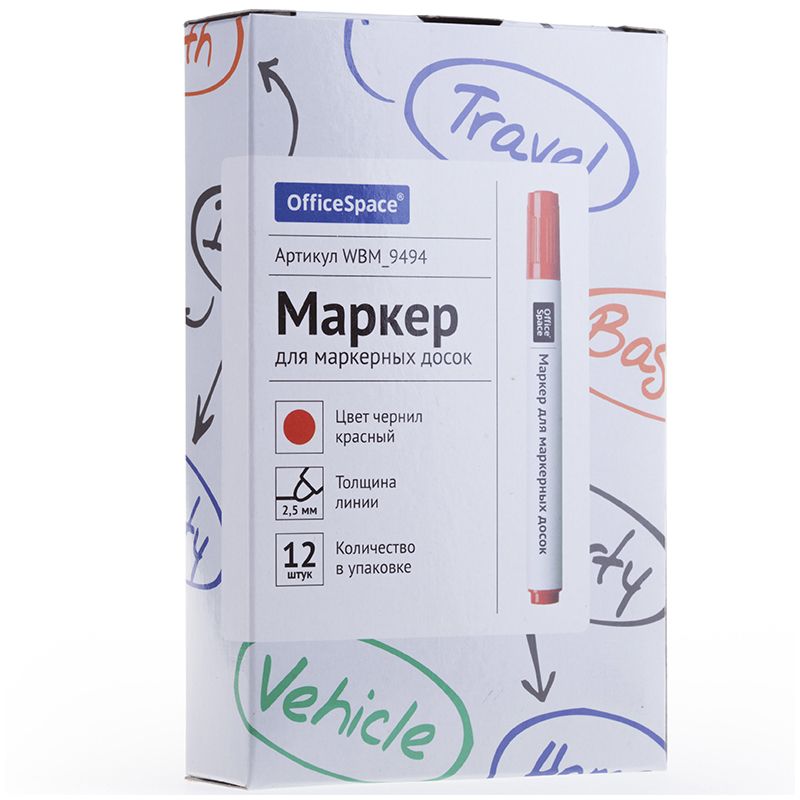 Маркер для белых досок OfficeSpace красный, пулевидный, 2,5мм