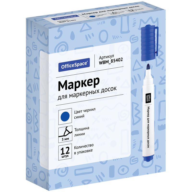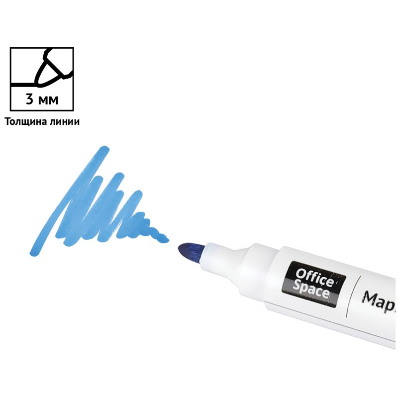 Маркер для белых досок OfficeSpace синий, пулевидный, 3мм