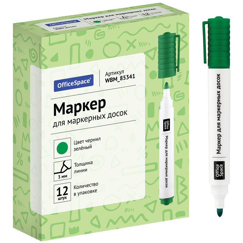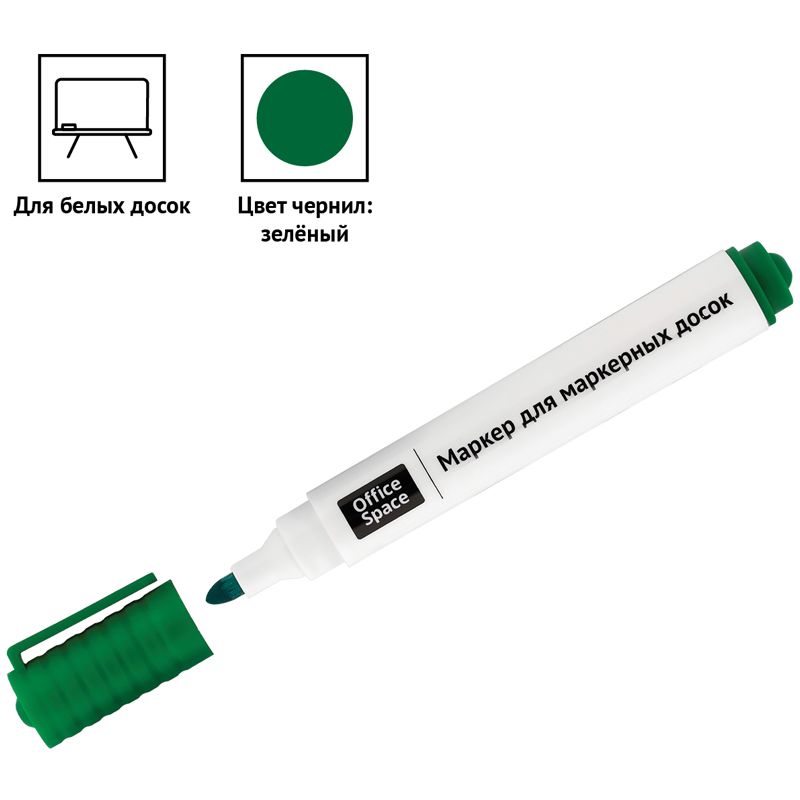 Маркер для белых досок OfficeSpace зеленый, пулевидный, 3мм