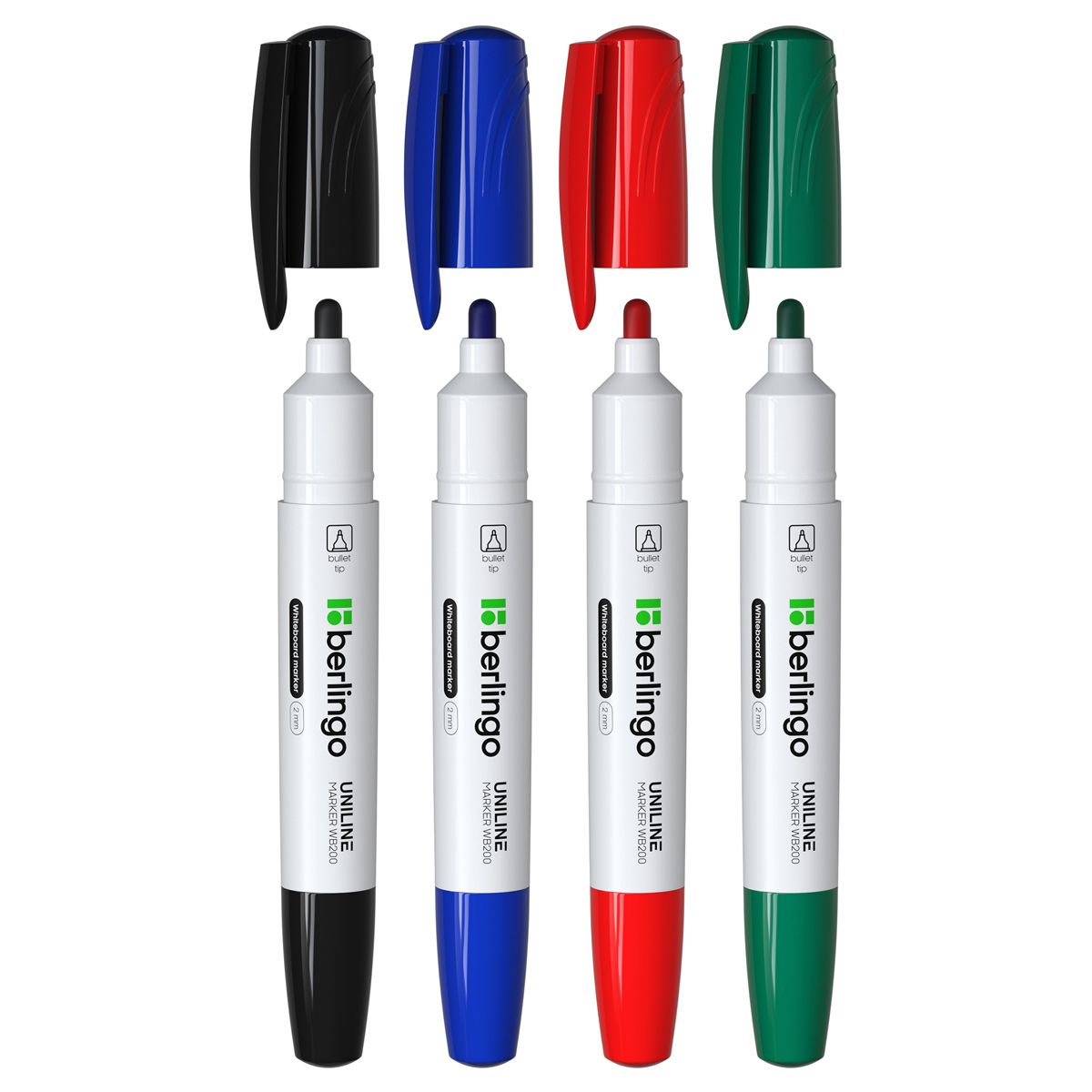 Набор маркеров для белых досок Berlingo "Uniline WB200" 04цв., пулевидный, 2мм, блистер