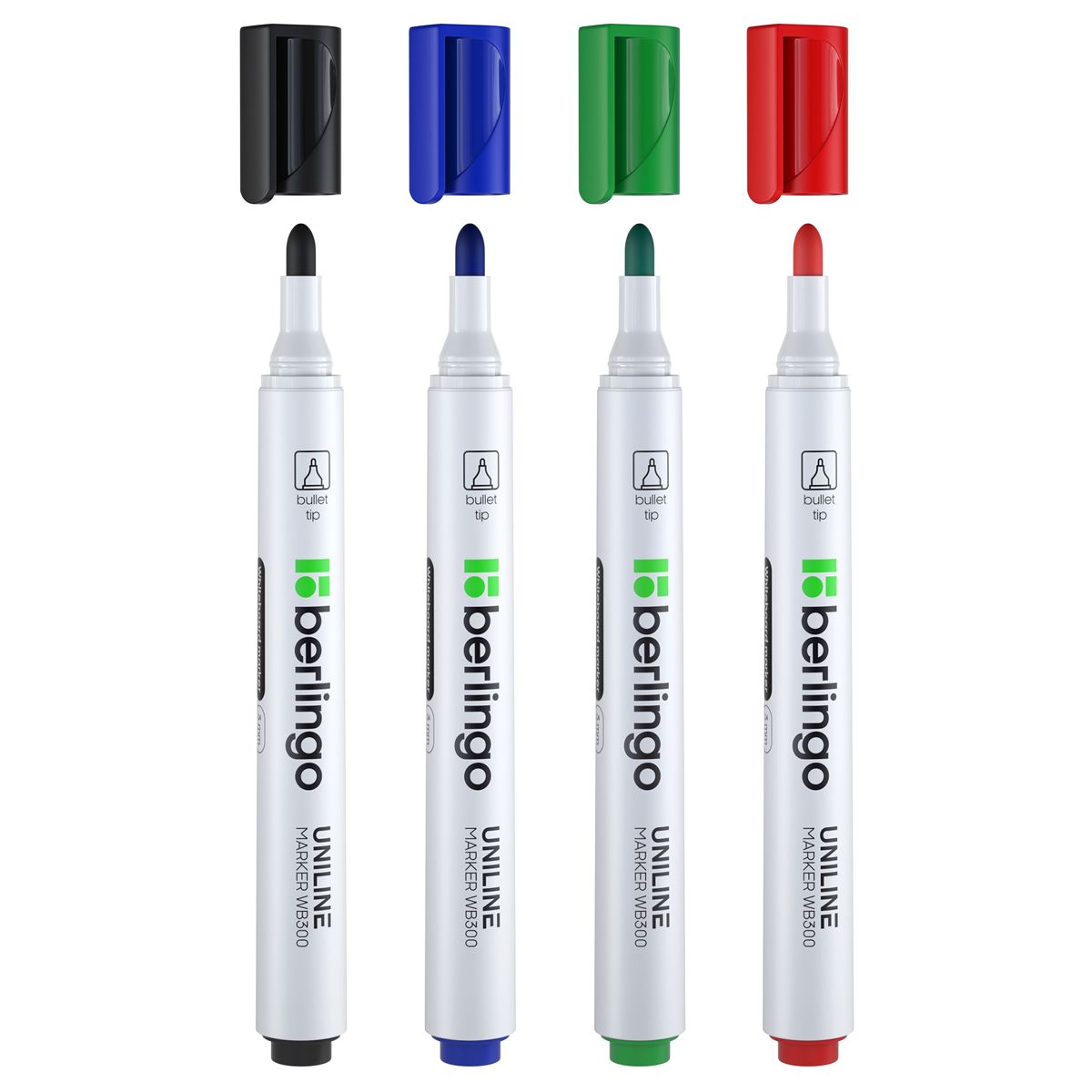 Набор маркеров для белых досок Berlingo "Uniline WB300" 04цв., пулевидный, 3мм, PET